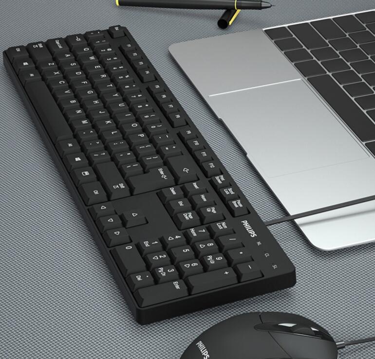 飛利浦鍵盤鼠標套裝USB有線電腦臺式筆記本辦公專用打字游戲機