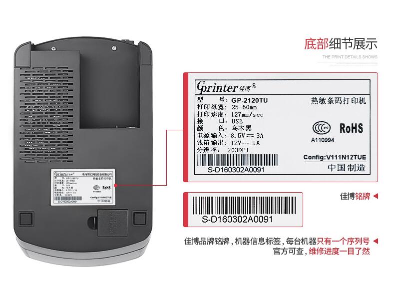 佳博GP2120TU熱敏打印機不干膠三防貼紙手機服裝吊牌貨架條碼藍(lán)牙二維碼奶茶超市面包食品價格倉庫標(biāo)簽打印機