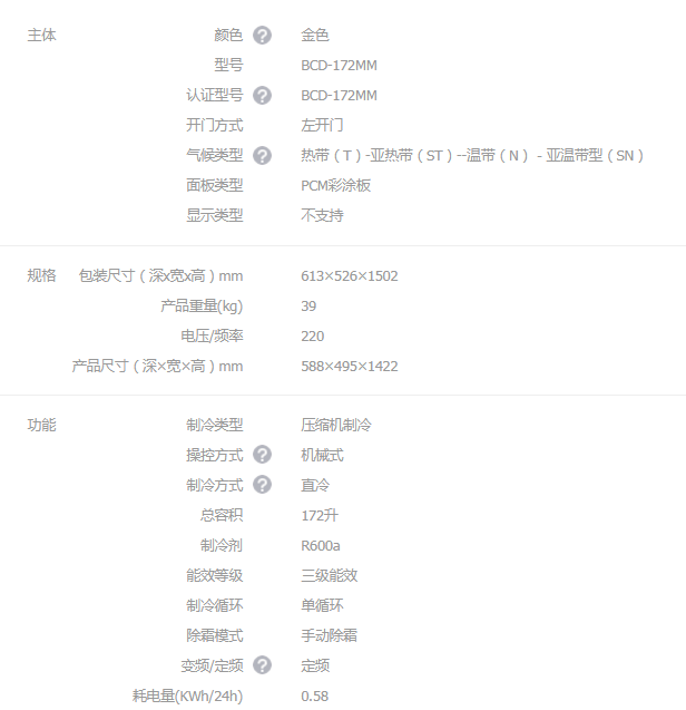 奧馬(Homa) 172升雙門冰箱 家用租房 冷藏冷凍 靜音節(jié)能 BCD-172MM金色