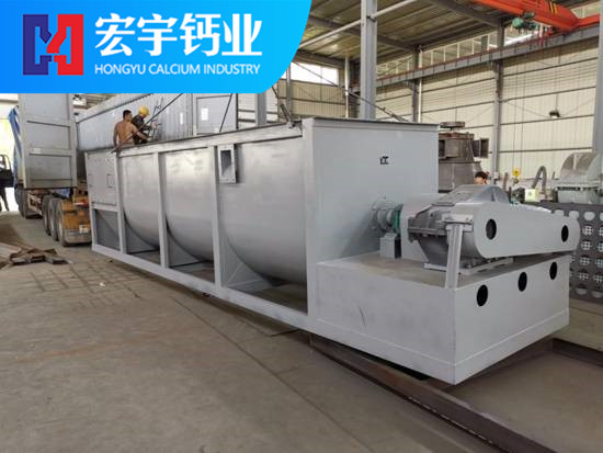 攪拌槽式石灰消化機(jī)(化灰機(jī))主要是將生石灰消化成消石灰粉的設(shè)備,也可以將生石灰消化成石灰乳,它分單軸攪拌和雙軸攪拌兩類,每類又分串聯(lián)式和組合式兩種形式。每種都是由動力裝置、攪拌槽體、攪拌軸、耐磨攪拌葉片、噴淋裝置、除塵裝置等組成。